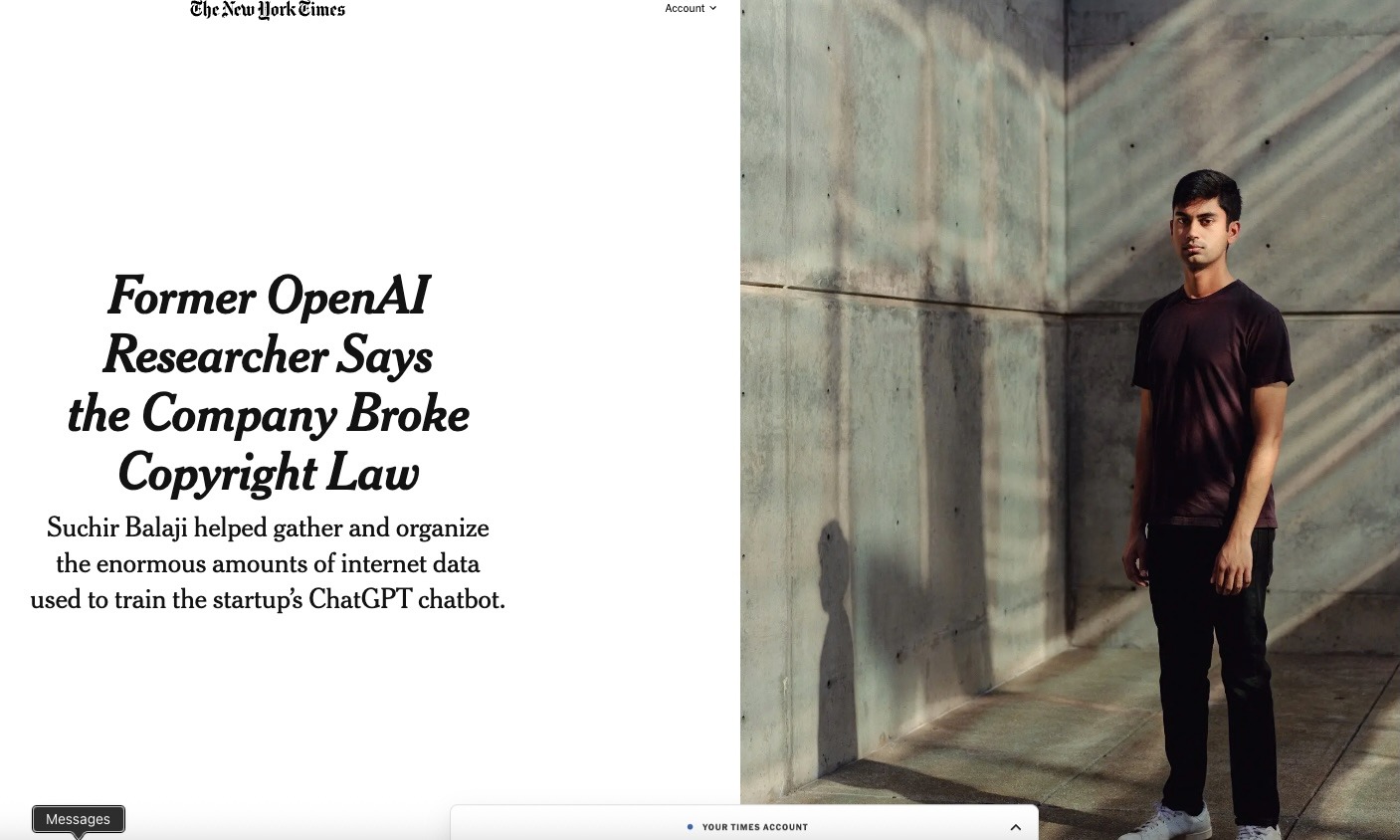 Former OpenAI Researcher Says the Company Broke Copyright Law